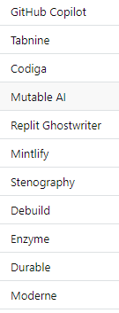 Let’s look at the Coding ones in reverse order: (it’s pointless to keep talking about GitHub Copilot when it’s Microsoft affiliated, there’s so much more out there:)